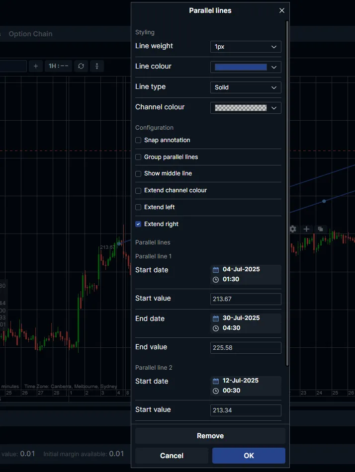 Click the annotation line, and then the Settings (Configure) icon to adjust the annotation’s style and properties.