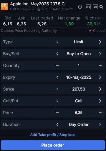 Once you've found the option you'd like to trade, find the maturity you'd like to trade.