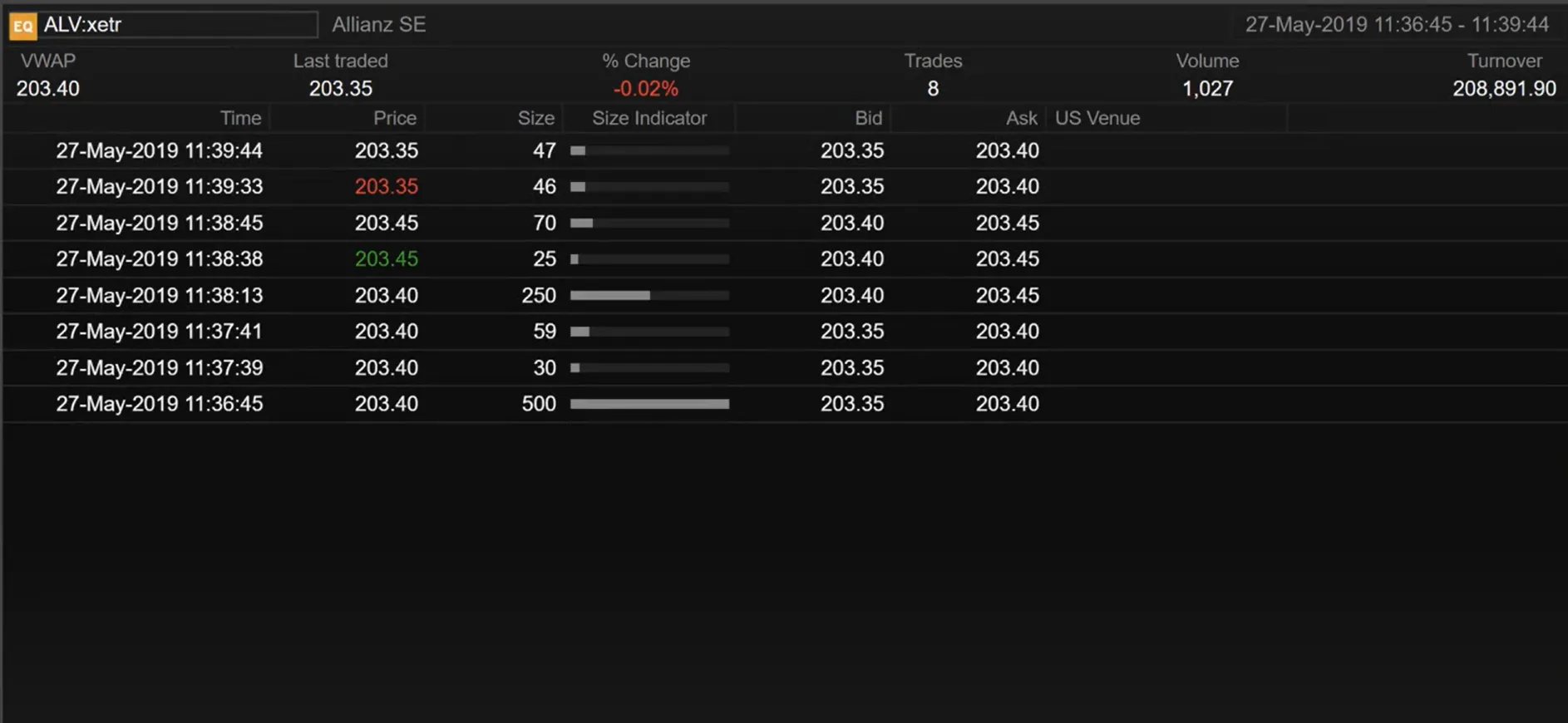 The Time And Sales module offer an insight into market movements providing real-time order executions on an exchange.