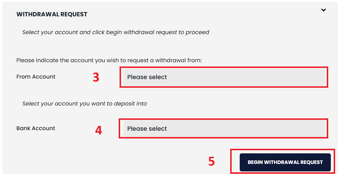 5) Select "Begin Withdrawal Request"