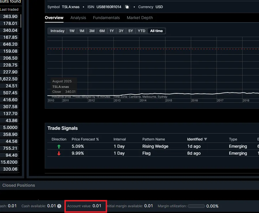 Unrealised profits/losses – Reflects gains or losses from open margin positions such as CFDs, FX, and futures.