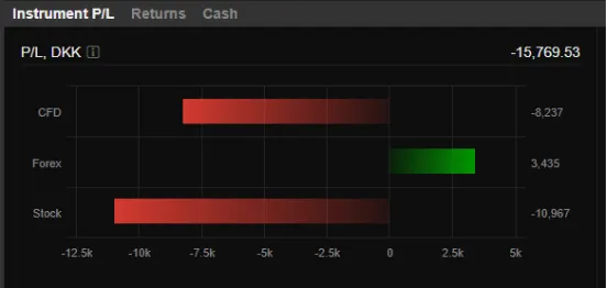 The bar graph shows the total Instrument P/L for each product class invested in within that specified time period.