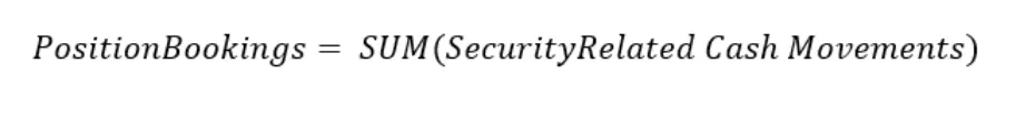 Position bookings track the sum of security-related cash movements over a specified period. These bookings reflect all financial activities linked to securities, ensuring accurate reporting of investment transactions.