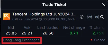 If you are trading Hong Kong products, please note that you will see the exchange is Hong Kong exchanges on both stocks and stock options.