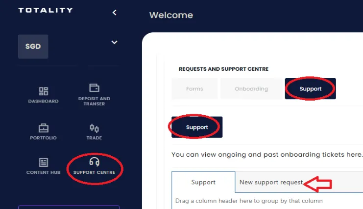If you would like to contact our support centre to enquire more about your transfer, please create a case by following the below steps: